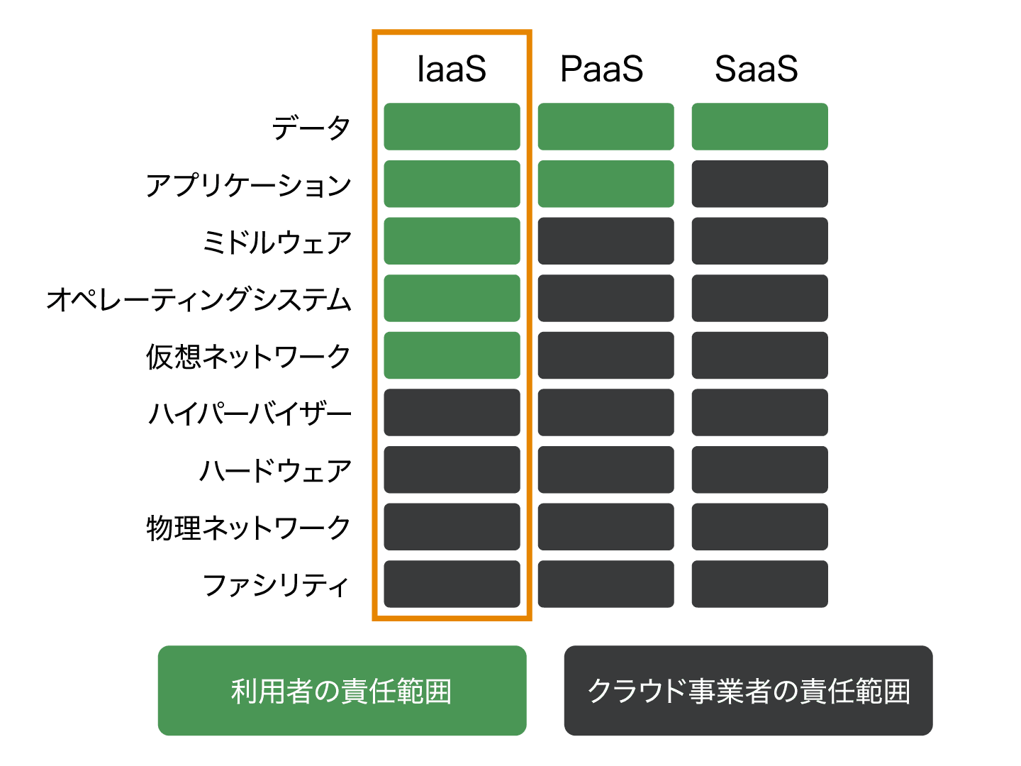 IaaS・PaaS・SaaSの大まかな違いは以下のとおりです。