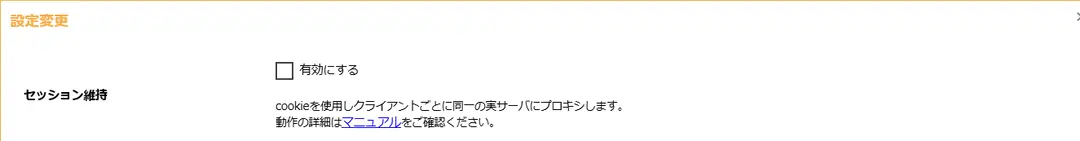 この設定は「エンハンスドロードバランサ」と実サーバー間のセッションに関するもので、クライアントからは確認できないため検証は割愛します
