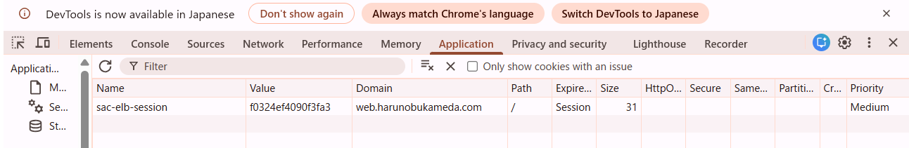 実際にクッキーが設定されていることをWebブラウザーで確認できます。
