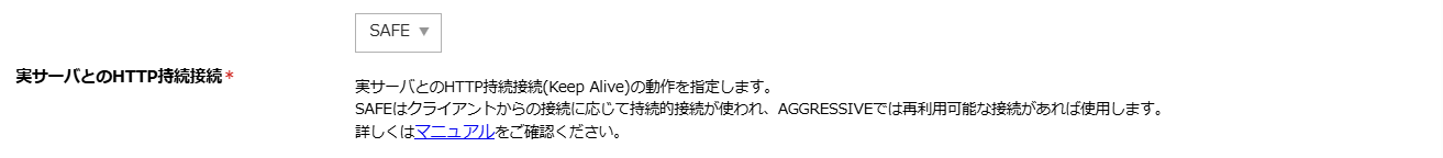 | SAFE | クライアントからの接続に応じて、実サーバーとの持続接続を用いる(デフォルト) |