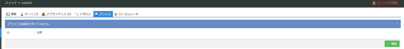 スイッチの詳細画面に移動したら「ブリッジ」タブを選択し、右下の「+接続」をクリックします。