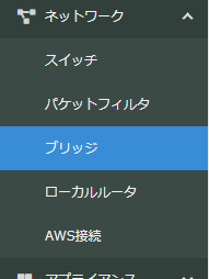 さっそく「ブリッジ」を作成してみましょう。クラウドのコントロールパネルで、左メニューの「ネットワーク」に「スイッチ」や「パケットフィルタ」と並んで「ブリッジ」があります。ここで少しややこしいですが、スイッチとブリッジには次のような違いがあります。