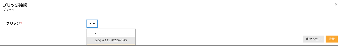 先ほど作成したブリッジ「blog」を選択して、右下の「接続」をクリックします。