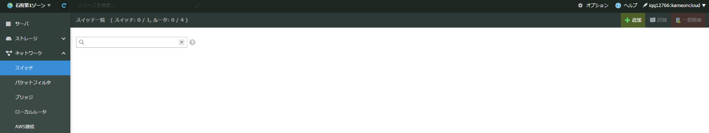 これまで、このネットワークがどのゾーンに存在するかは気にしていませんでした。今回は異なるゾーンのスイッチを接続しますから、既存の環境は東京第2ゾーンに構築されているとし、そして新たに石狩第1ゾーンでサーバーを起動します。