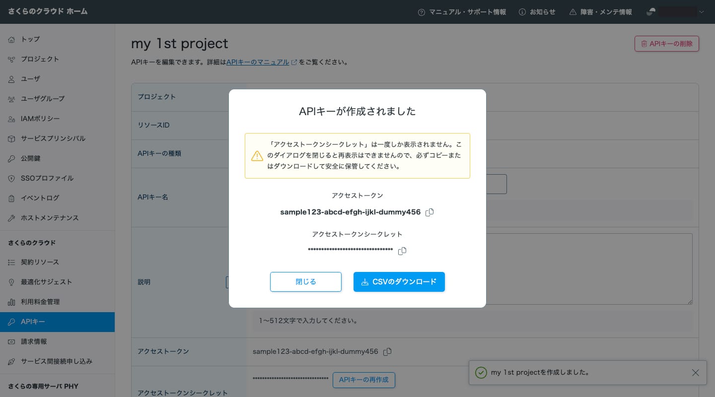 さくらのクラウドでも、APIを呼び出すためのアクセストークンを作成できます。これが、シークレットにあたります。このアクセストークンを API呼び出しに含めることで、正当なアクセスを認証します。
