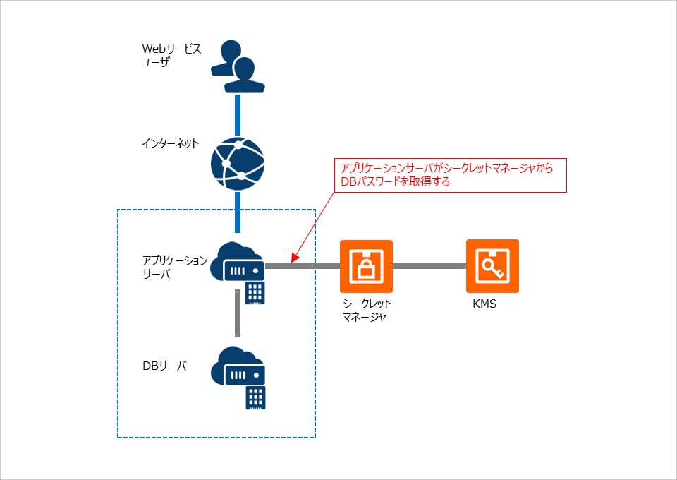 ここでは、アプリケーションサーバーがシークレットマネージャからDBパスワードを取得しています。