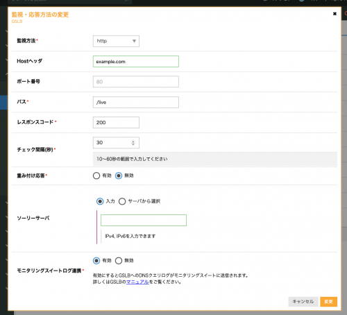 詳しい設定手順やログの仕様については、GSLBのマニュアルをご参照ください。