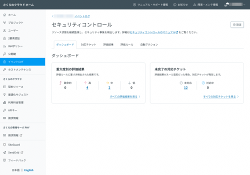 セキュリティコントロール機能は、さくらのクラウド管理画面よりご利用いただけます。