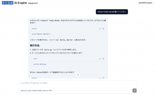 コンパネ 新機能 さくらのAI Engine「Playground」機能を追加しました さくらのAI Engine さくらのクラウドで提供しています「さくらのAI Engine」において、コントロールパネルに「Playground」機能を追加しました。続きを読む» 2025.10.03